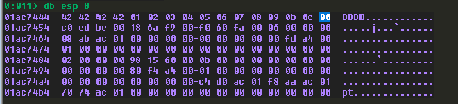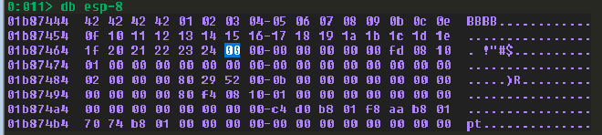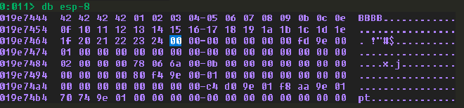 我沒有全部都截圖,但理論上當你重覆這個過程到最後,你應該能夠取得以下的 badchar 集合。記得我們前面說過有一些 badchar 是幾乎所有程式都會中獎的,沒錯,就是 0x00,你可以直接放進去。現在你應該成功找出了所有的 badchar。這些就是未來在疊 ROP 或是寫 shellcode 的時候被禁用的字元。不過當然有方法繞過,但這個我們暫且先不談。